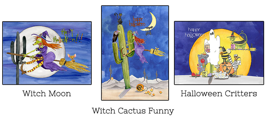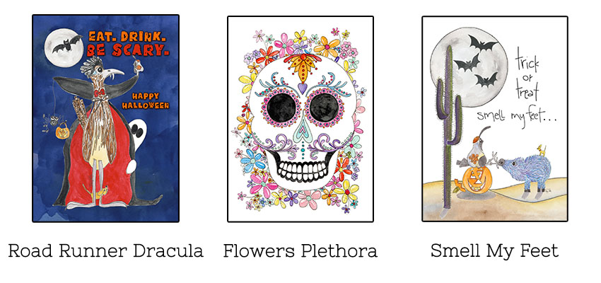 Holidays mean cards! ย Send some Halloween fun from the desert with Zinnia Sky Studio cards – they’ll make you and whoever you send them to smile!