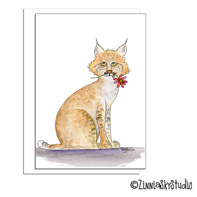 Do you think a bobcat would really enjoy eating a flower? ย Probably not. ย They’re not even close to being vegetarian so plant based diets are out for them. ย Do you know why they’re called bobcats? ย Well it’s because of their short stubby tails – like a cat’s tail only bobbed. ย Blank inside because no one says it better than you.