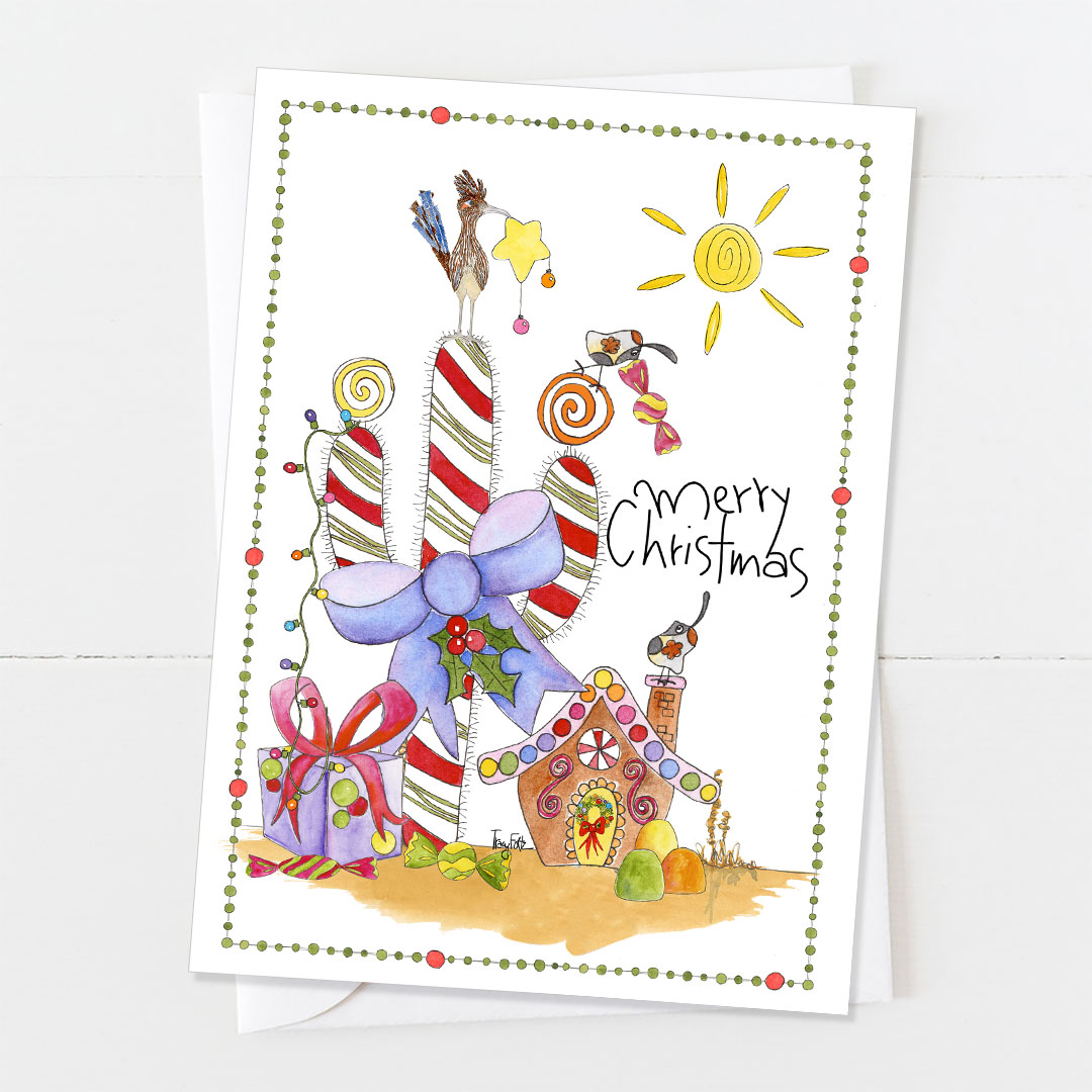 This card is ideal for anyone who loves both the desert and the holiday season. It brings together two different worlds: the beauty of the desert and the joy of holiday candy. Whether you’re sending holiday wishes across the miles or just down the street, this card will surely make someone smile.