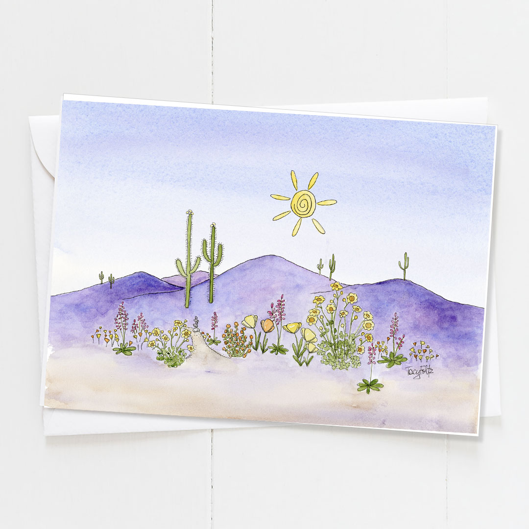 The desert is filled with fun things. And this note card set is too. Just a small collection of all the things found in the desert but one that you will enjoy sending a quick note on. Keep it on hand for last minute occasions and special moments. Blank inside for your perfect words.
