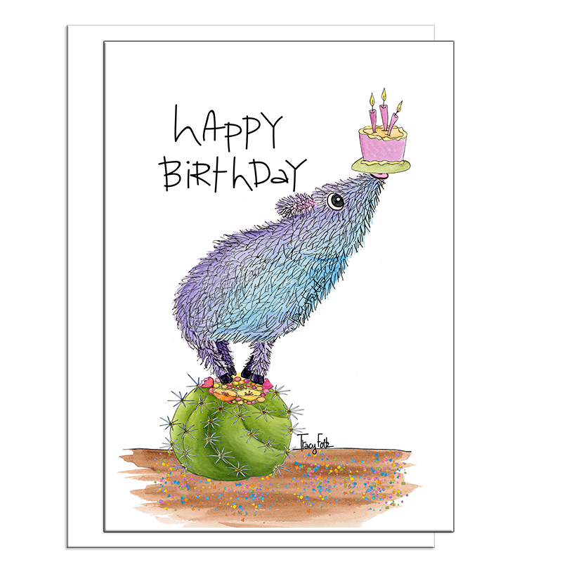 Javelina Pig Cake Southwest Birthday Card is a great celebratory birthday card from the desert. Can you just see the javelinas standing on cactus to share birthday gifts? What a delightful way to send greetings on that special day! Blank inside because no one says it better than you.