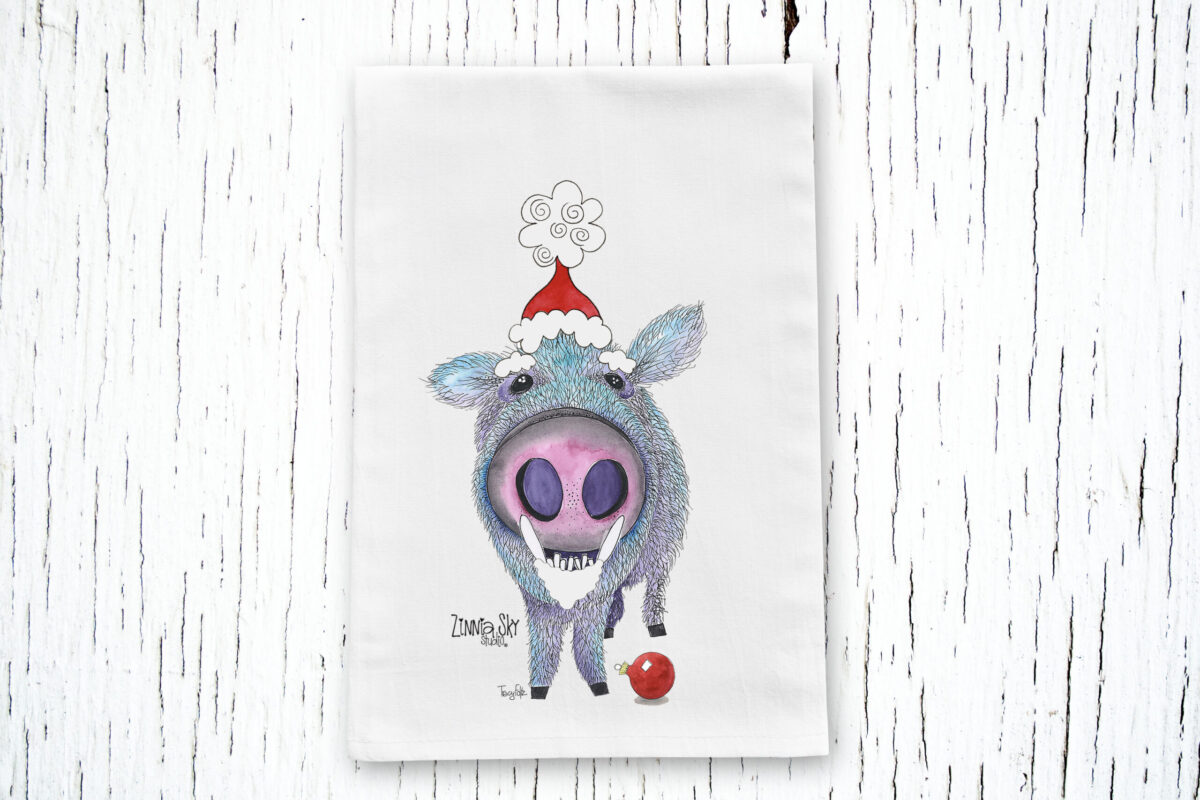 Add some festive Southwest charm to your holidays with our Javelina Santa Tea Towel! This holiday-themed towel features our original javelina dressed as Santa, making it a fun and unique addition to any kitchen. Perfect for spreading holiday cheer, this 100% cotton tea towel is both decorative and functional, with high-quality prints that wonโt fade or peel. Whether for drying dishes or adding a touch of holiday spirit, this towel is a must-have for your home this season and many more to come!