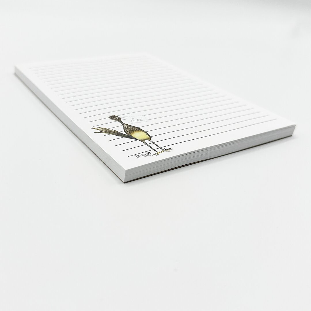 NP1007 Road Runner Fun Notepad is perfect for all your most important notes. Road runners are fascinating birds with big personalities. This particular road runner is holding a note to identify your note as important. Put all your notes on this fun pad of paper.