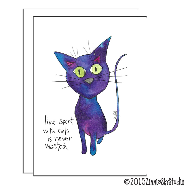 A cat may not be purple but time spent with them is truly never wasted. ย This card is perfect for that special cat lover you know. ย They’ll think you’re the best when you send them this card, even if their cat isn’t purple! ย Blank inside so you can tell them how great their cat is.