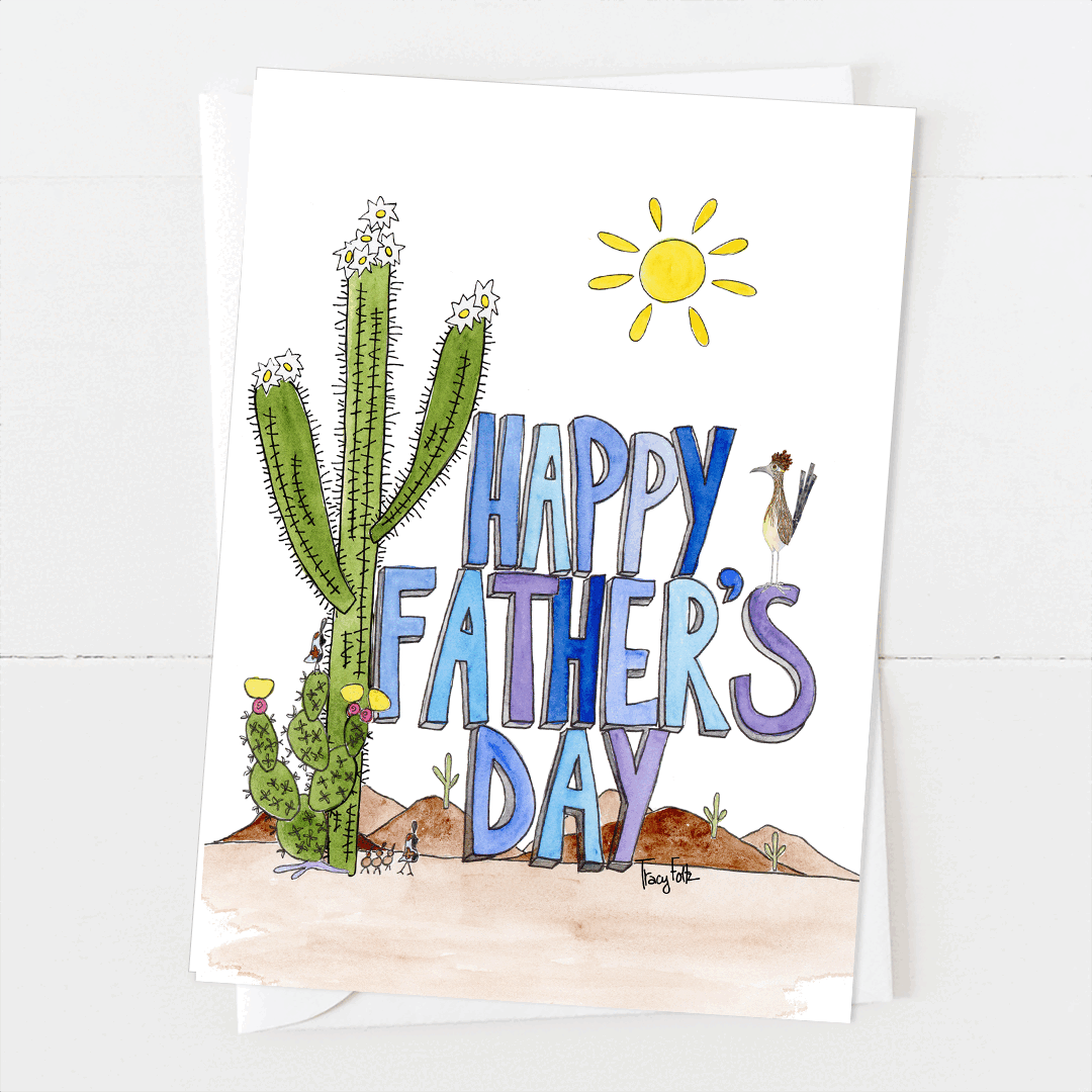 Important things about this Saguaro Cactus Blue Father’s Day card: