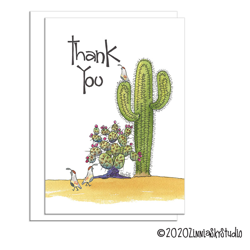 A southwest cactus thank you card that lets you say thank you from the desert! Let these Gambel’s quail help you send a heartfelt thanks to someone special.