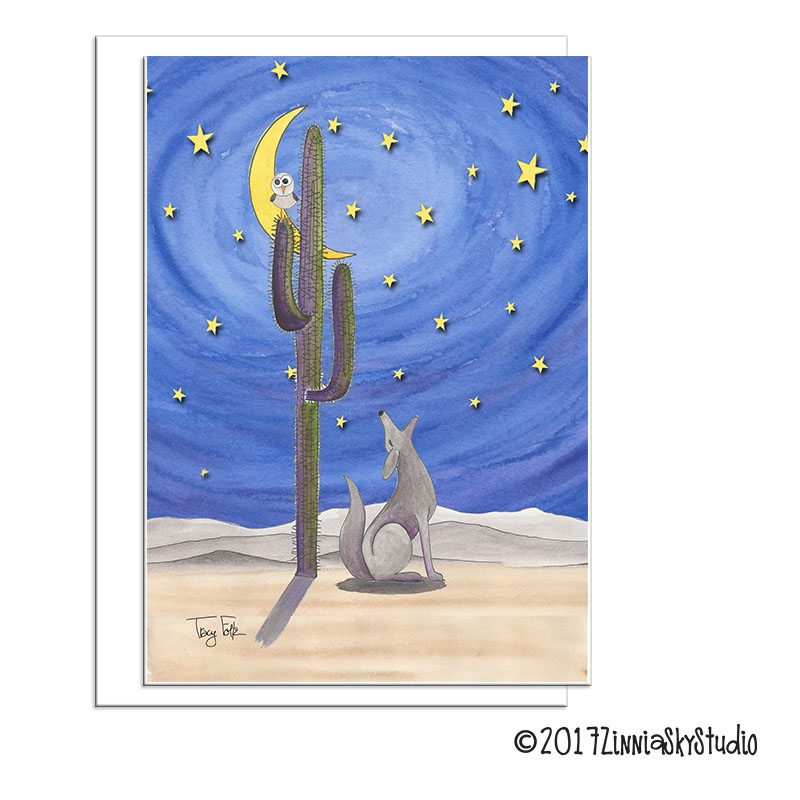 Important things about this Southwest Desert Coyote Skies Blank card: