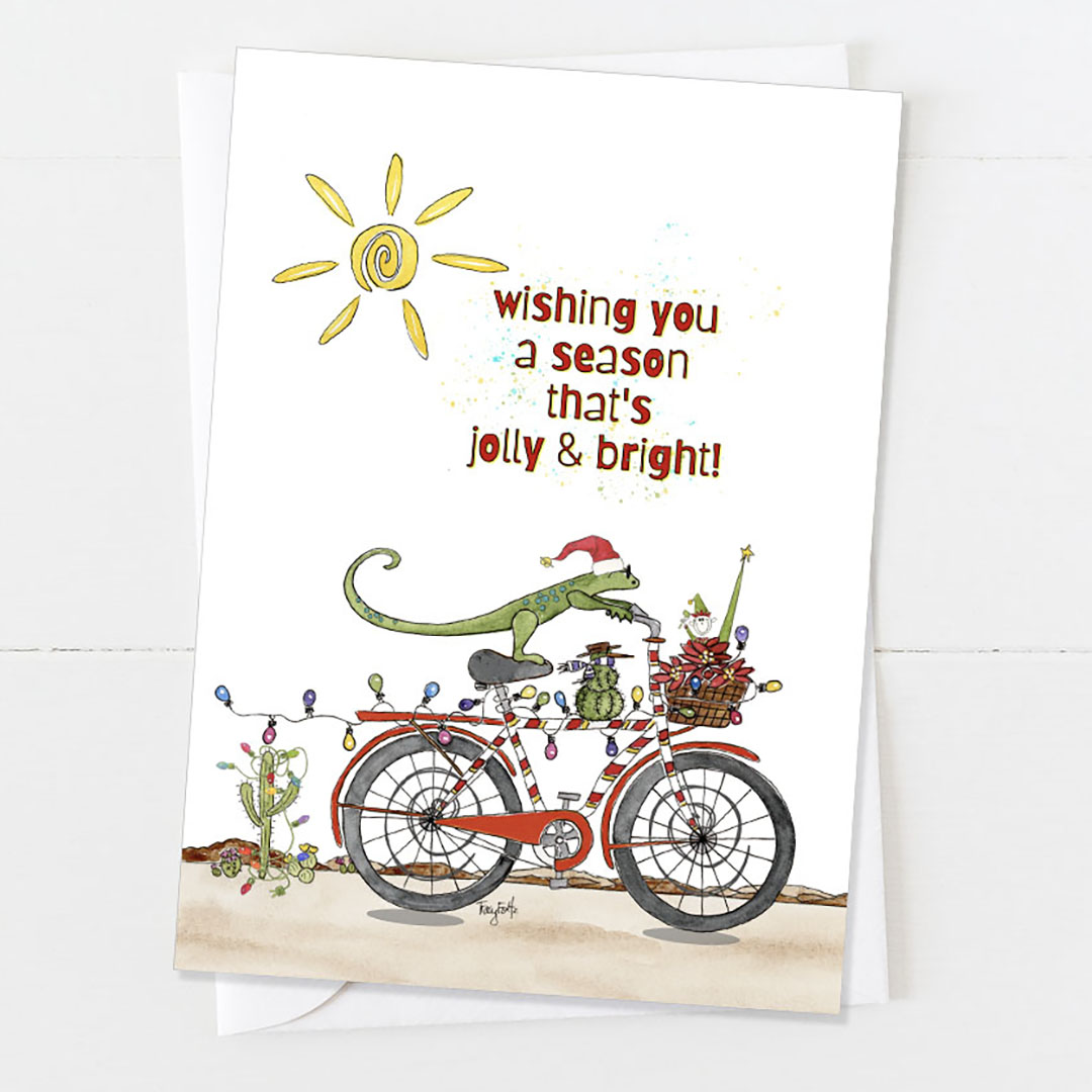 Southwest Hanukkah Blue Hanukkah Card. Celebrate the season with this bright blue Happy Hanukkah filled with all the desert essentials. Send some happy from the desert this Hanukkah and make someone special smile. Blank inside because no one says it better than you.
