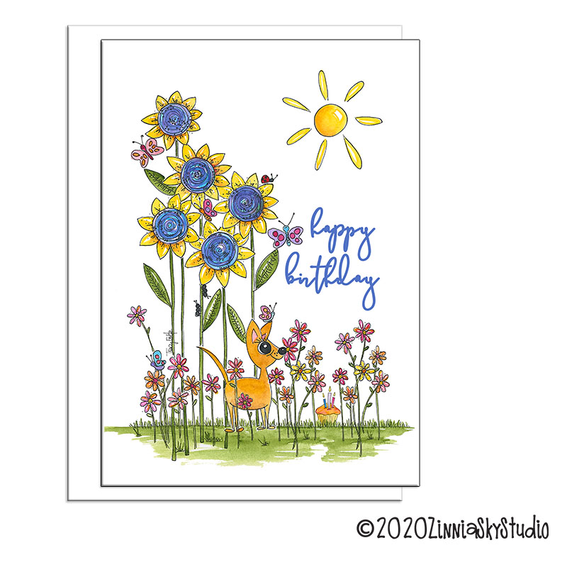 Important things about this Sunflowers Butterflies Dog Birthday Card: